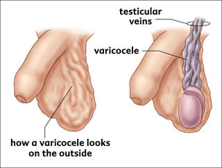 O varicocelo aparece quase sempre no testículo esquerdo, porque a veia espermática esquerda insere-se na veia renal esquerda quase na perpendicular, podendo, por isso, ‘refluir’ mais facilmente. Sabe-se hoje que o varicocelo provoca alterações estruturais no testículo e que pode ser causa de infertilidade.