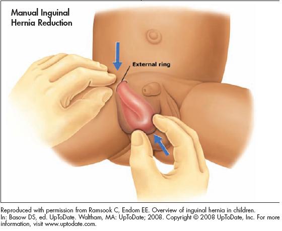 O tratamento do hidrocelo comunicante e da hérnia do lactente e da criança é o mesmo e consiste na laqueação (isto é, encerramento) do tal canal peritoneo-vaginal cirurgicamente. No entanto, os tempos para cirurgia diferem. A hérnia inguinal deve ser operada o mais brevemente possível, porque tem risco de encarcerar. Ou seja, o intestino pode prender no escroto impedindo que ele volte para dentro. Para além de dor intensa, o bebé desenvolverá um quadro oclusivo, porque o conteúdo intestinal deixa de progredir apartir daquele ponto. Começam os vómitos e a deterioração do estado geral é muito rápida. Se houver encarceramento, deve levar o bebé imediatamente a um serviço de urgência.